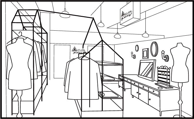 白と黒をベースに、店内にもジオメトリックのモチーフを取り入れた店舗にしたいと思っています。