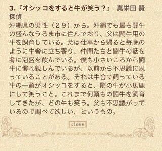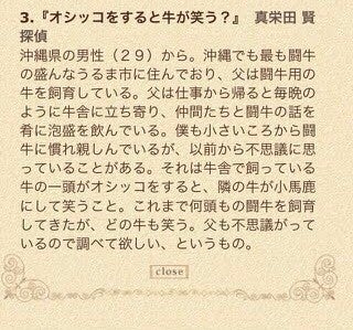 ④【探偵ナイトスクープに闘牛ネタで出演】真栄田賢探偵が調査に来てスタジオ一同爆笑回となる。