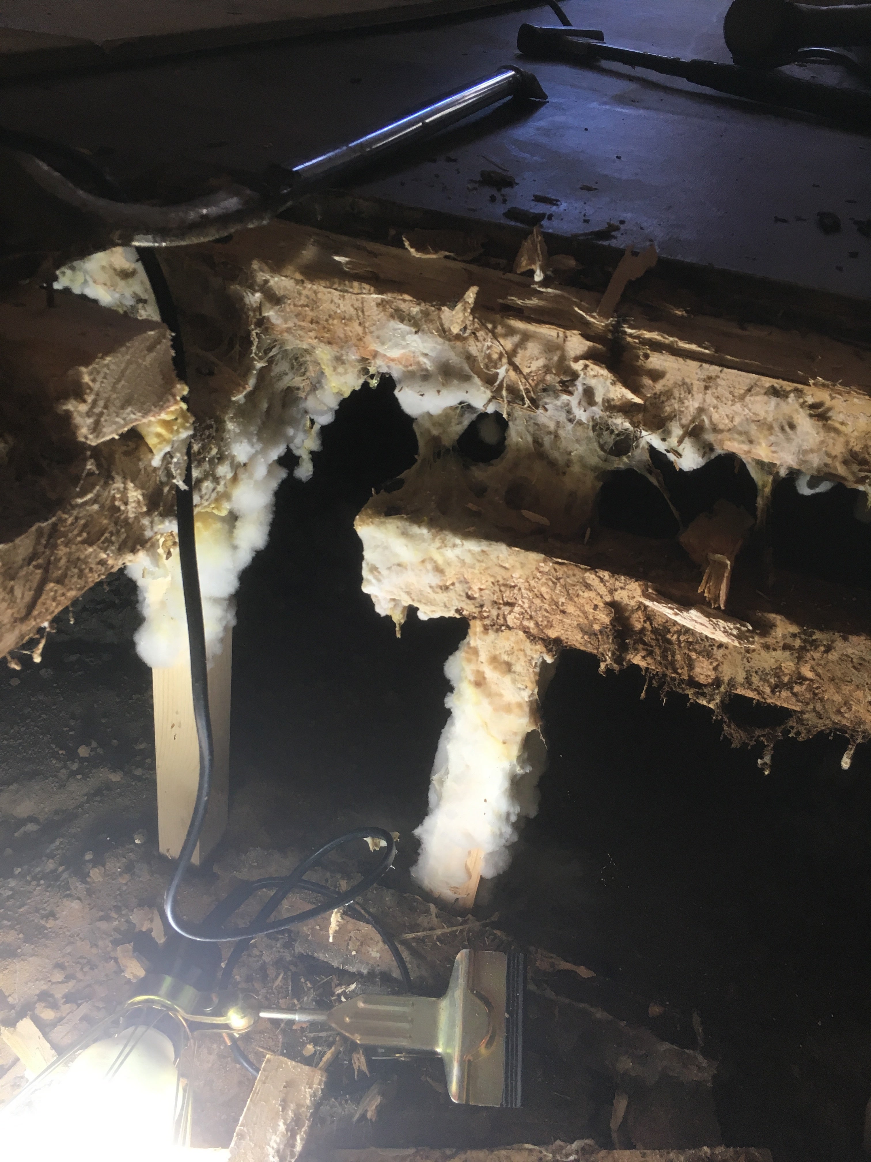 今にも崩れそうな、マットの下の床の様子を少しお見せします。