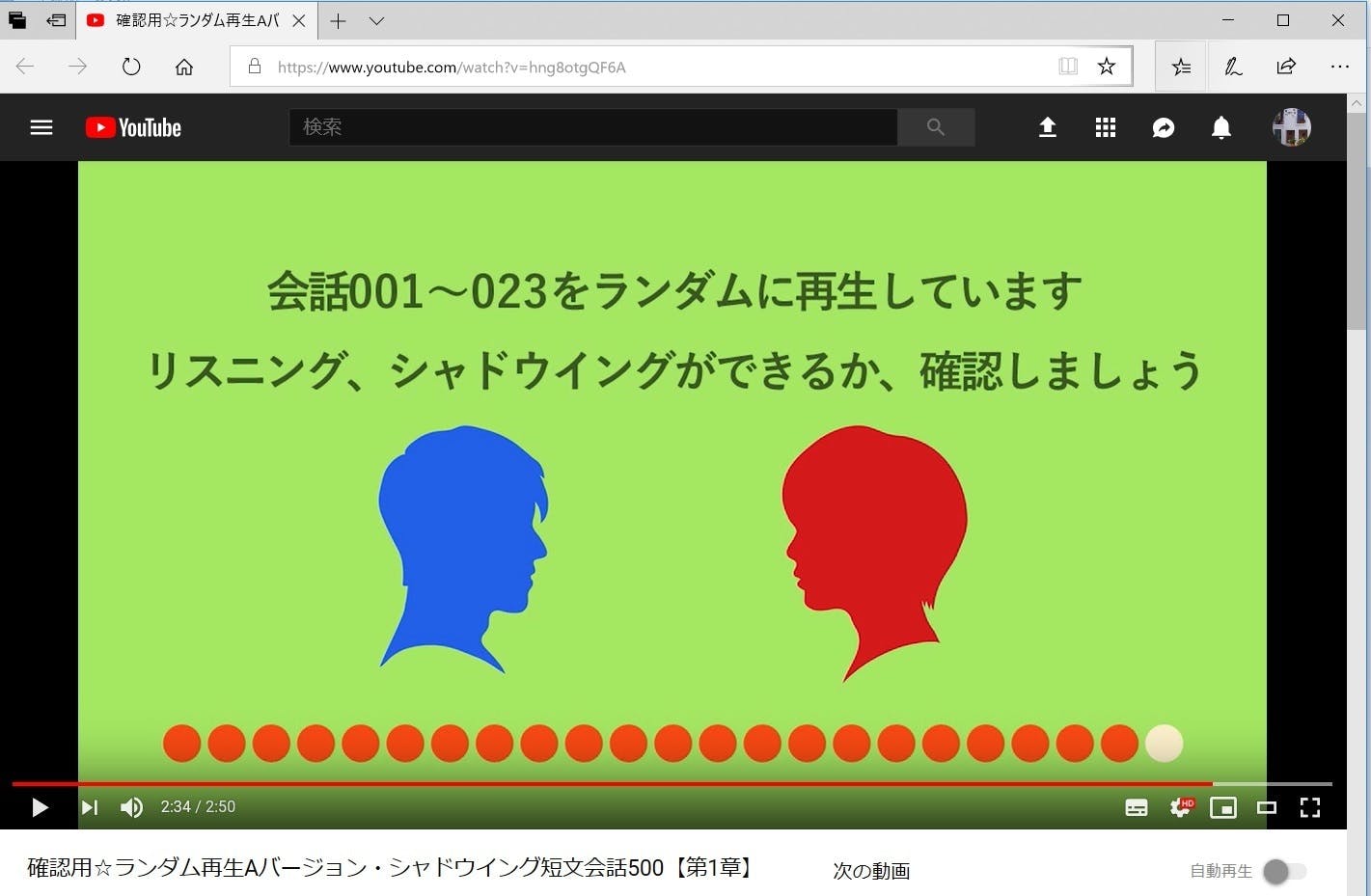 ビデオ教材(動画)の内容は、1つの会話につき、それぞれ4種類の方法で繰り返して練習できるようになっています。
