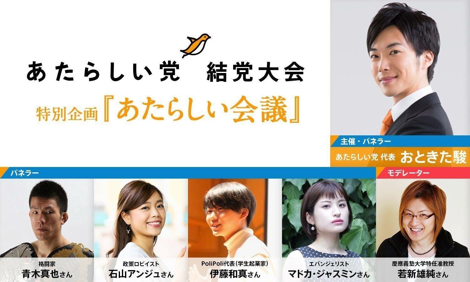2018/11/27 11:26こんにちは、おときた駿後援会スタッフです。先日お知らせしました『みんなでつくる結党大会』すでに多くの方にお申し込みをいただいています。ありがとうございます。あたらしい党『みんなでつくる結党大会』 2018/12/22(土) 19:00~https://passmarket.yahoo.co.jp/event/show/detail/01ja3azy19fq.html本イベントのメイン企画のパネルディスカッション、「あたらしい会議」の登壇者・ゲストが先ほど確定いたしました!【登壇者】※敬称略パネリスト:・青木真也(プロ格闘家)・石山アンジュ(政策ロビイスト)・マドカ・ジャスミン(エバンジェリスト)・伊藤和真(PoliPoli代表/学生起業家)・おときた駿(あたらしい党代表/東京都議会議員)モデレーター:若新雄純(慶應義塾大学特任准教授)超豪華です!!!!ここまで業界・世代を超えた登壇者の集まる政治についてのパネルディスカッション、なかなか聞けることはないのでは!?!?会場の関係上、人数集まり次第締め切らせていただきますので、ぜひお早めにお申し込みください!!!!(※パトロンの方はリターンに参加権がついており無料となりますので、メールでお知らせしているパトロン様用申し込みフォームからお申し込みください)当日お会いできることを楽しみにしています!!おときた駿後援会スタッフより▼最新情報はHP,SNSからチェック〇あたらしい党HPhttps://newparty.jp/〇あたらしい党 公式Facebookページhttps://m.facebook.com/newparty.jp/〇あたらしい党 公式Twitterアカウントhttps://twitter.com/newparty_jp〇あたらしい党 公式Instagramhttps://instagram.com/newparty.jp もっと見る