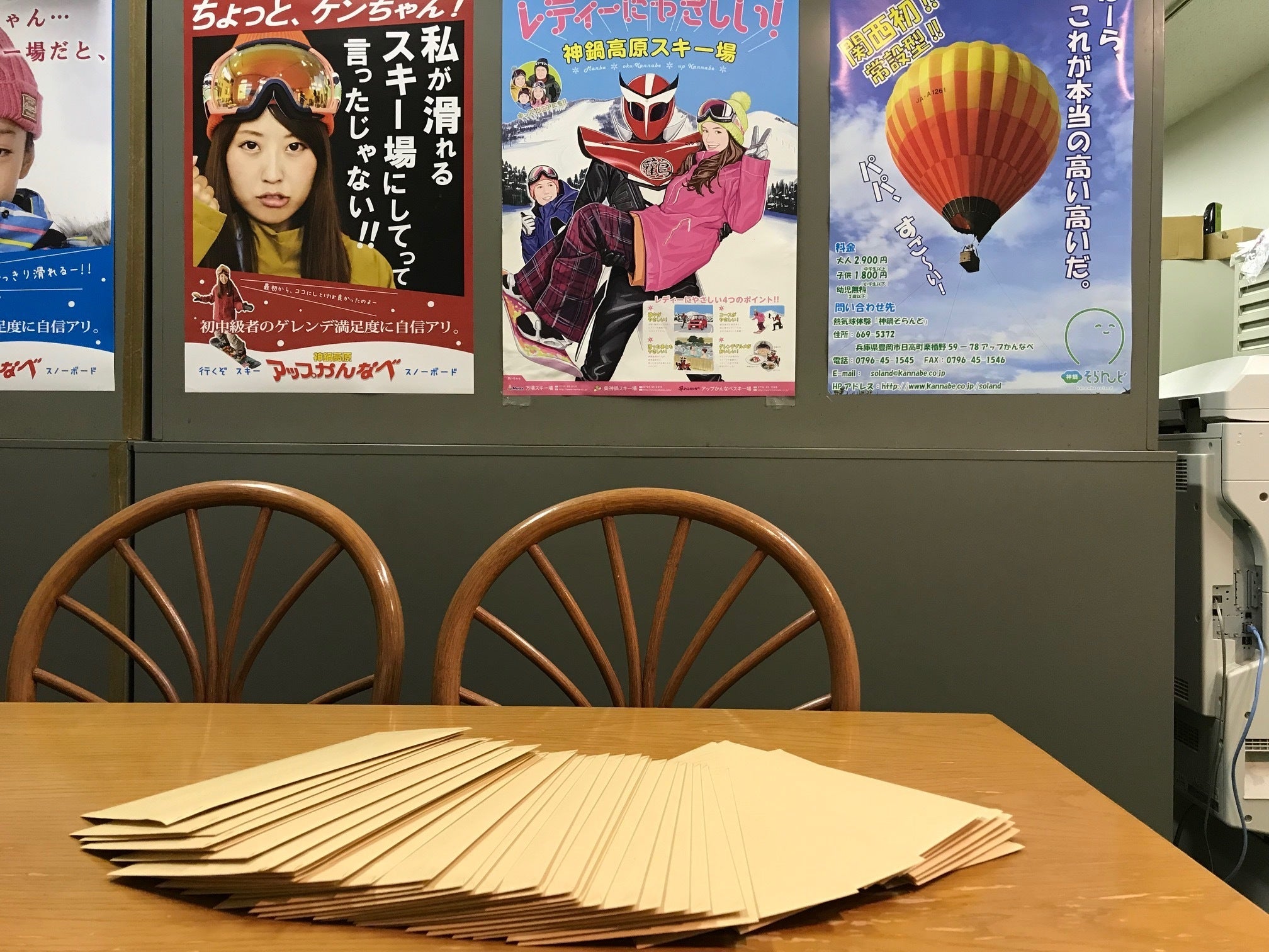 2018/11/23 18:59みなさま、こんばんわ。アップかんなべの樋口です。寒くなってきた今日この頃、いかがお過ごしでしょうか?ここ、神鍋高原にもやっと初雪の便りがありました。日本全国、いろんなスキー場が「空から白いものが!!」と興奮している今朝でした笑さて、みなさま、大変お待たせしました!本日より、リターンの発送を開始致しました!49名のパトロン様に向けてこれらの封筒が出発します。中には、お礼の気持ちをしたためた手紙とここばかりのステッカーが入っております。バックヤードツアーにお申込みいただいた方は別途ご希望のプログラムをお伺いさせていただきますので、担当者より11月下旬~12月上旬の間にメールまたはお電話にてご連絡させていただきます。また、オリジナルTシャツをお申込みいただいた方も、制作完了までもう少々お時間を頂戴しております!さてさて!「雪のゆうえんち」プロジェクト、着々と進行しております。元々、倉庫兼、給湯室?みたいな場所だったスペースをオムツ替えスペースに大改造中です。こちらは、昨年まで事務所だったスペースを快適にお着換えいただける更衣室に改造中です。雪のゆうえんちの遊具たちも、早ければ来週ぐらいにアップかんなべにお目見えする予定です!!詳細は乞うご期待~。 もっと見る