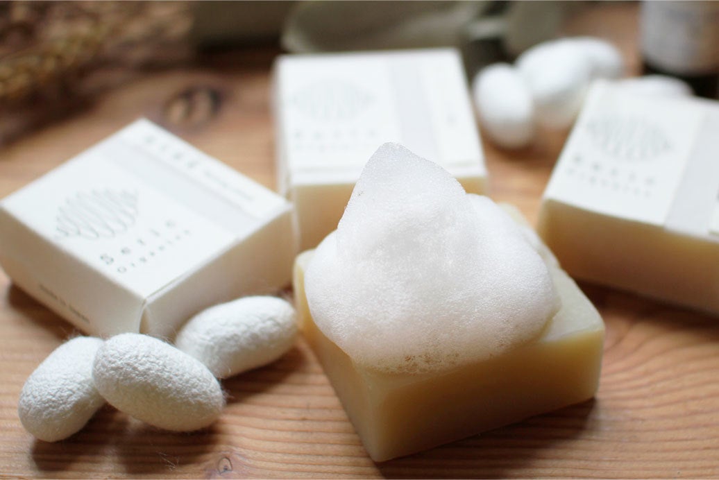 天然の蚕の糸から抽出されたセリシンをこれまでになくふんだんに使ったオーガニック由来の石鹸です。