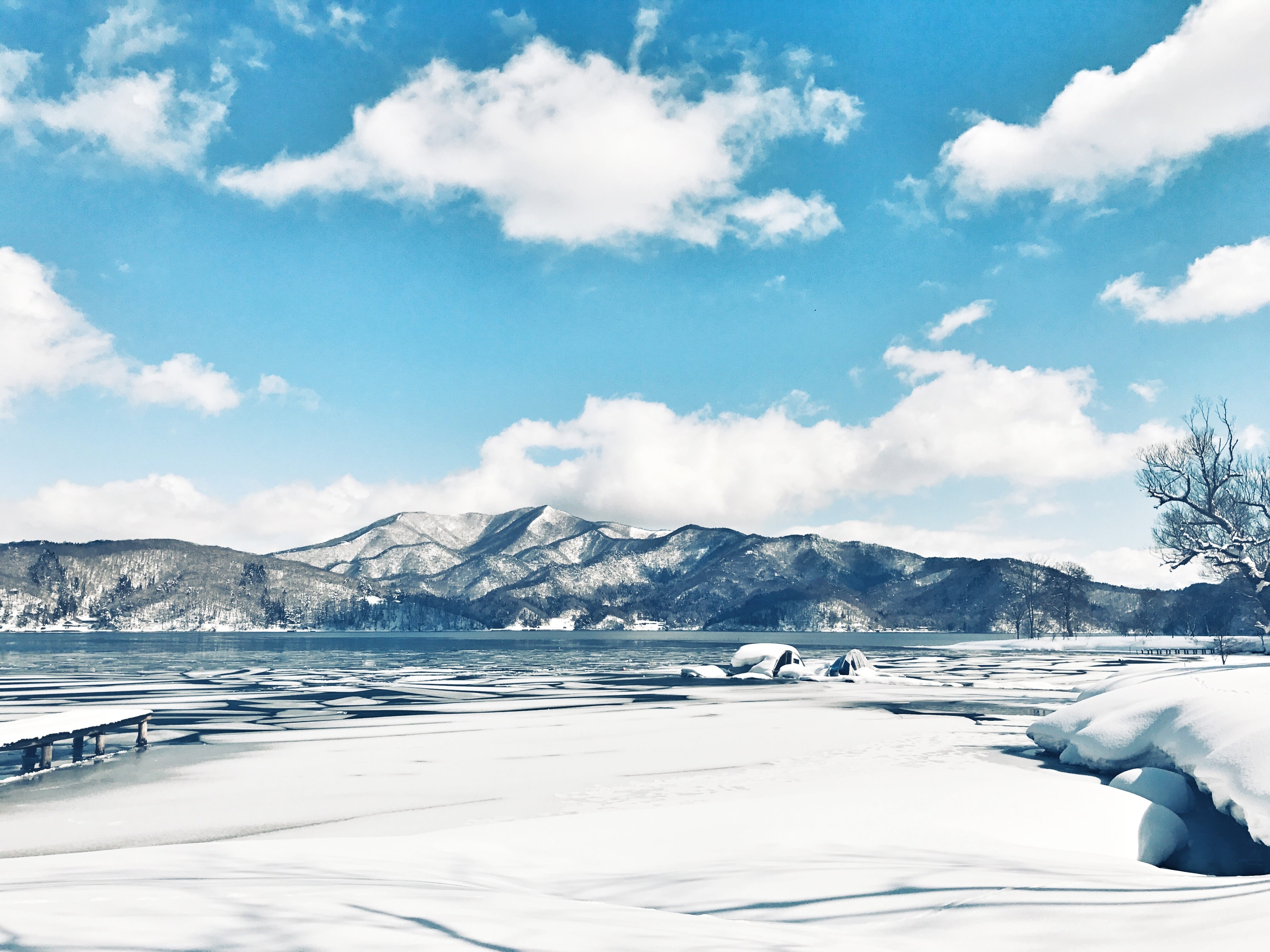 冬の野尻湖は一面雪景色。