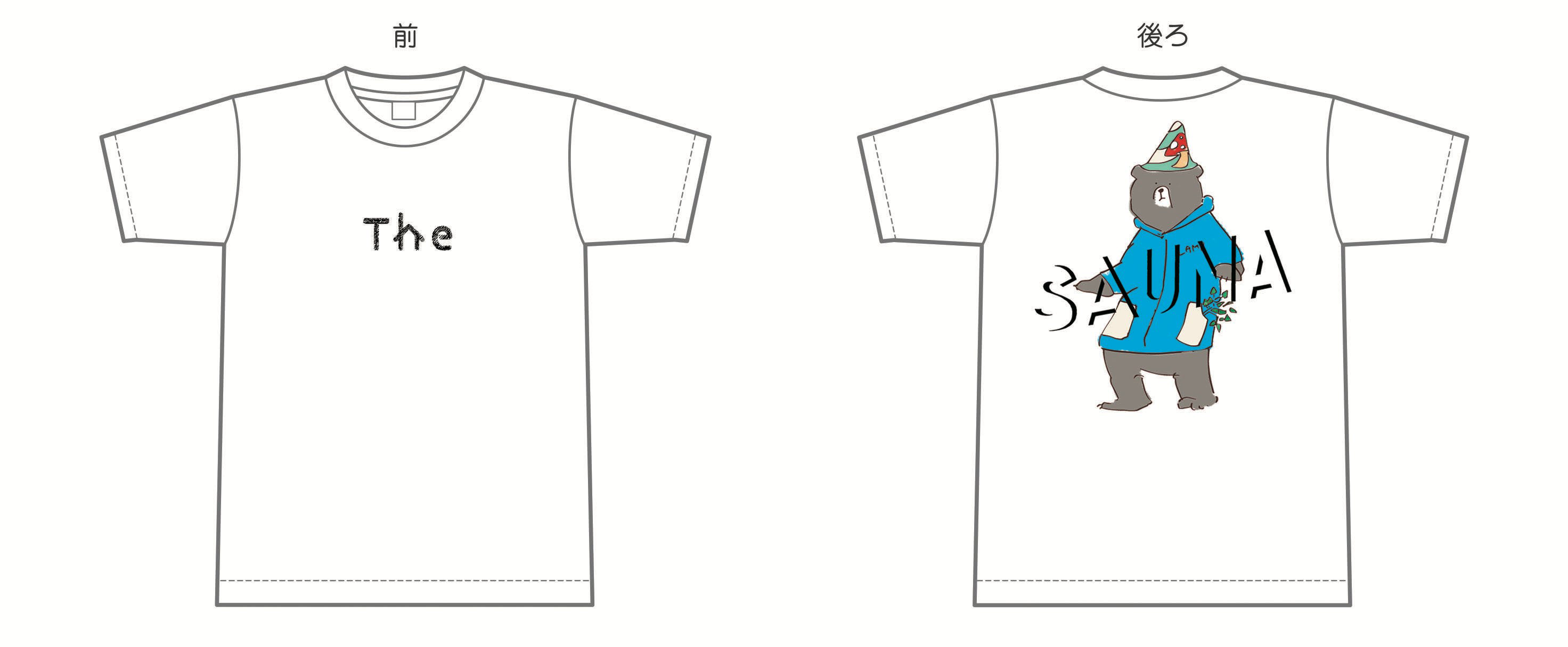 The Saunaの「The」を胸に刺繍で入れ、背中にはサウナハットを被ってなんとも言えないポーズをしているクマさんをプリントしました。 UNITED ATHLEのビッグシルエットTシャツを使用しているため、サウナ上がりなどにゆったり着れるように設計しています。