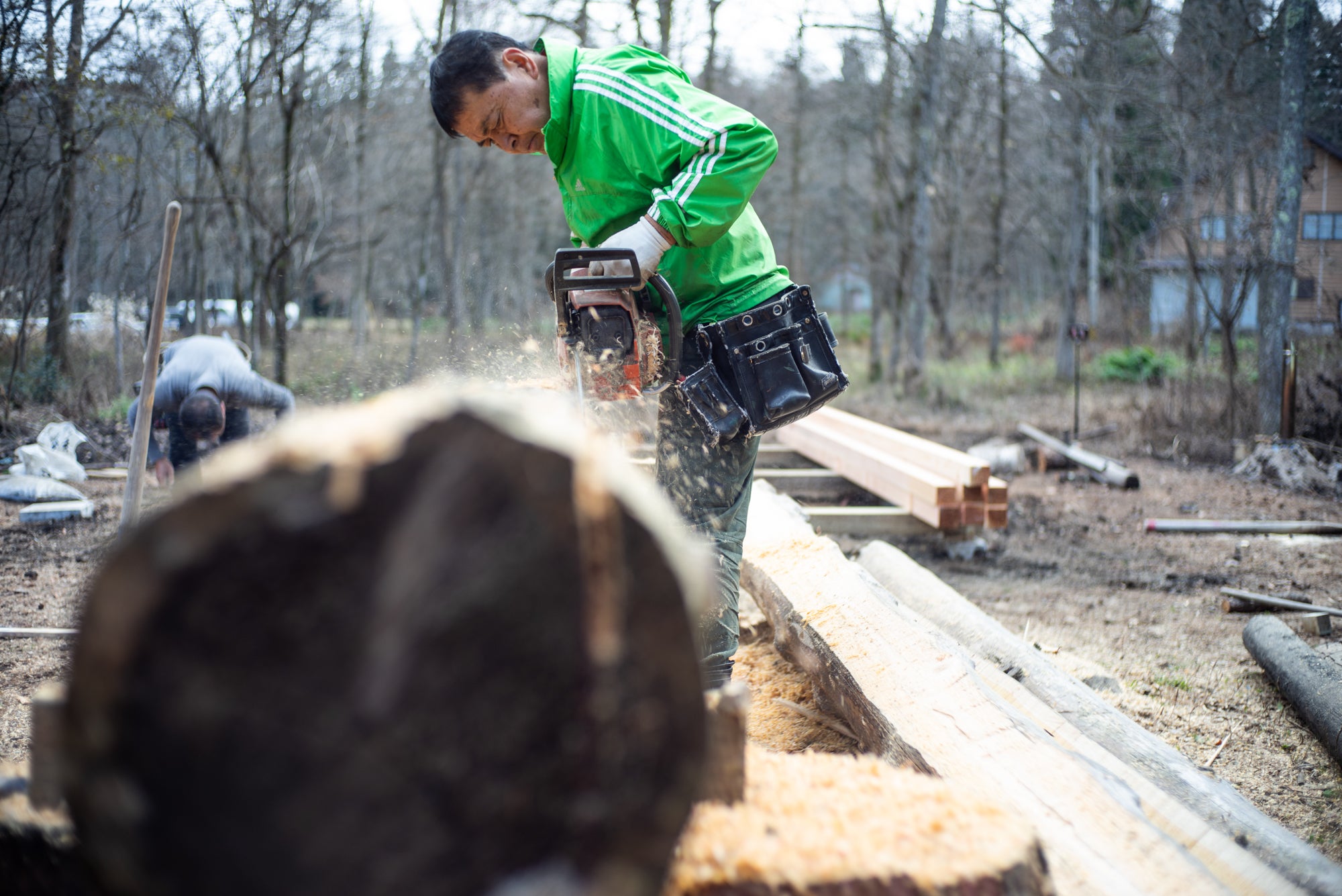 「これまで、ログハウスをたくさん作ってきましたが、サウナ小屋は初めてです。The Saunaのプロジェクトをきっかけに、いろんな場所にログのサウナ小屋を作っていきたいです」
