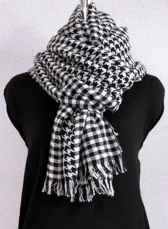 今回のウールコアコットン 大判ストールは伝統的な千鳥格子とブロックチェックを組み合わせたちょっと凝った柄にしています。