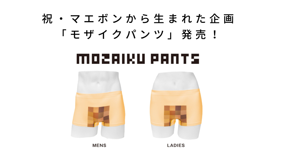 2019/11/01 06:38『マエボン』にご支援いただいたみなさまへマエボン編集長の浜田綾です。昨年の2018年9月29日、前田デザイン室が作った雑誌『マエボン』が発売となりました。あれから1年、みなさんはマエボンの中に掲載されていた「モザイクパンツ」を覚えていらっしゃいますか?モザイクパンツとは、こんなんです。その名の通り、大事な部分にモザイクがしっかり入ったパンツ。メンズもちゃんとありますよ。エッジの立ったこの企画、実際マエボンを手にとっていただいた方の中でも反響が大きいコーナーでした。何より、モザイクパンツの発案者は他ならぬ室長の前田さん。この「一緒にモザイクパンツを作ってくれる企業を募集します」は、冷やかしでもなんでもなく、真剣そのもの。その証拠に携帯電話の番号は本当に前田さんのものなのです。ここから下着関係、アパレル関係者に会うたびに「モザイクパンツを作りたいんだけど…」と声をかけ続けた結果、知人からの紹介でアンダーウエアメーカーの株式会社ジョーラムさんをご紹介いただき商品化にこぎつけました。その結果、完成したモザイクパンツがこちら。デデン!「あったらいいな」から、本当に生まれてしまった「モザイクパンツ」。今こそマエボンP28のコピーを復唱しましょう。世の中に必要のないものだから必要なんだ。「これって必要?」と考えず、「なんなのこれ?おもしろいなぁ」と、面白がる心がある方に是非おすすめです。モザイクパンツとセットになったリターンはもちろん、お気持ちからのカジュアルなリターンもご用意しています。1年の歳月を経て紙面から飛び出した「モザイクパンツ」。マエボンをお手にとっていただいた方には是非ともチェックしていただきたいプロジェクトです。そんなモザイクパンツは、現在クラウドファンディングに挑戦中。11月29日まで開催しております。ぜひご覧ください。 ↓↓↓「童心を取り戻せ」を形に。モザイクのついたヘンテコな面白パンツをつくりたい!https://camp-fire.jp/projects/view/196902 もっと見る