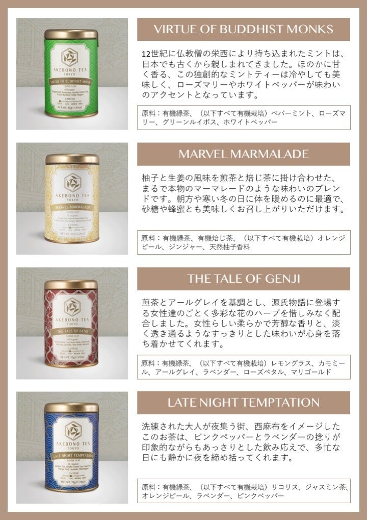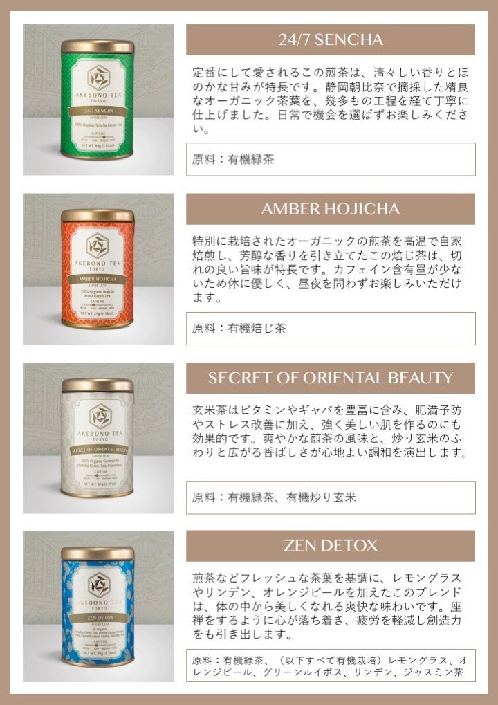 私はこの度、すべてのブレンドのベースに日本茶を使用したオーガニックティーブランド【AKEBONO TEA(アケボノティー)】を立ち上げます。