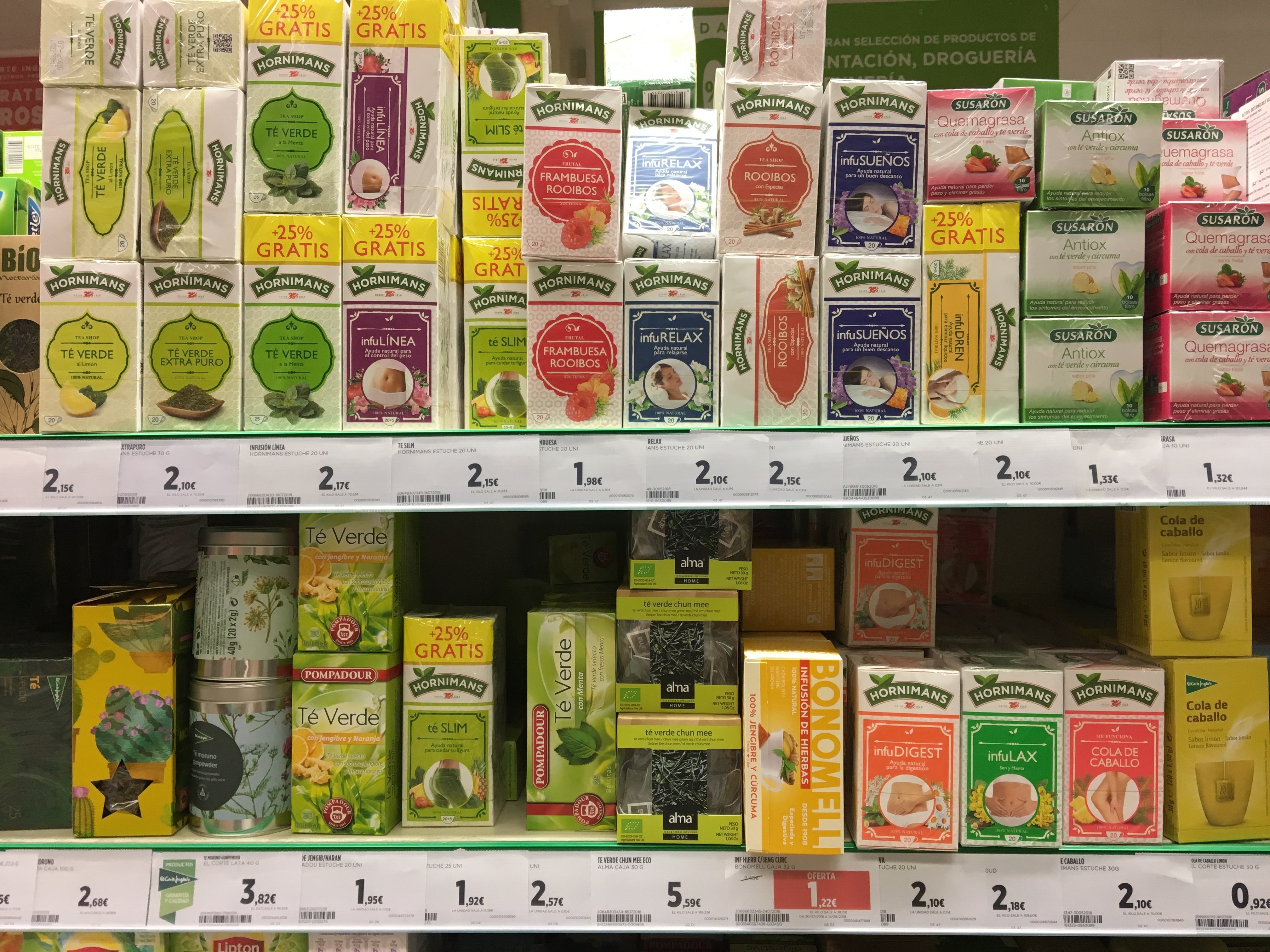 <全て緑茶(te verde)スペインのスーパーにて撮影>