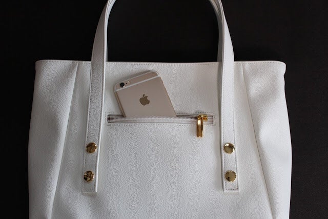 後ろには外ポケットがついていて、携帯電話やICカードなどすぐに取り出したいものが入ります。