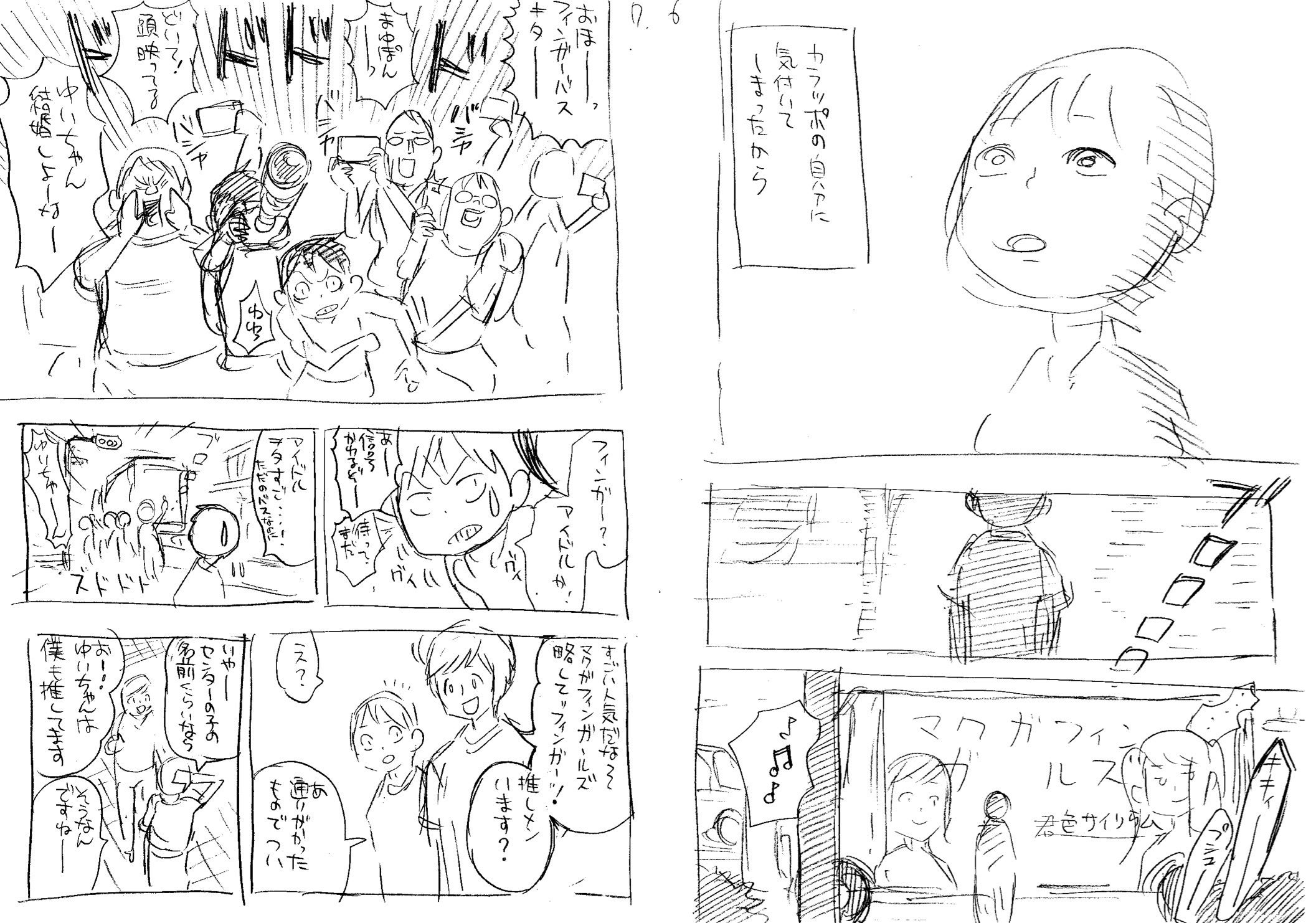 構想から4年、その間には様々な苦難がありました。描いても描いても掲載を見送られ、断られ、心ない言葉を浴びせられることもありました。それでも折れることなく(いや、ちょっと折れたこともあった)描き続け、2017年1月に「閃光ボーイズ」のタイトルでアフタヌーン四季賞準入選をいただき、2018年4月に『あの娘ぼくがヲタ芸決めたらどんな顔するだろう』のタイトルでジャンプ+に前後編の読切作品として掲載されました。