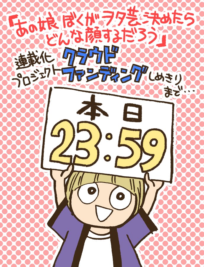 2018/10/27 20:15こんばんは、コップに入った水を「あとこれだけ」と思うのか?「まだこんなにある」と思うのか?俺はこう言おう「まだまだこんなに残ってて俺は幸せものだー!!」 浮かれています、田辺洋一郎です。 本当に、本当の本当に、みなさまのおかげで100%達成しました!! 心の底からありがとうございます!!!!! これで晴れて「あの娘ぼくがヲタ芸決めたらどんな顔するだろう」の連載が決定です。8月からずっとこもって描き進めてきた原稿が無駄にならなくて良かった!本っ当に良かった!! この喜びは、編集者に会議室で決められるより1万倍も1億倍も嬉しいです。そして、責任も強く感じます。絶対に後悔したと思わせない漫画の出来(とリターン)でお返ししていきたいと思っています。 しかし!です。 冒頭でも書いた通り、まだ2日と数時間が残されています。 100%だと5話までの原稿料ですが、さらに大きく超えていけば、続きを描くチャンスが出てきます。ストックの中から厳選した5エピソードだけど、全然描き足りない!もっとアイドルの世界を、ヲタの楽しさを、深く広く描いていきたい!! なので、「まだこれから」という意気込みで、残り時間取り組んでいきたいと思います。 しつこくてすいません…… まだまだこれからだ!! 田辺 もっと見る