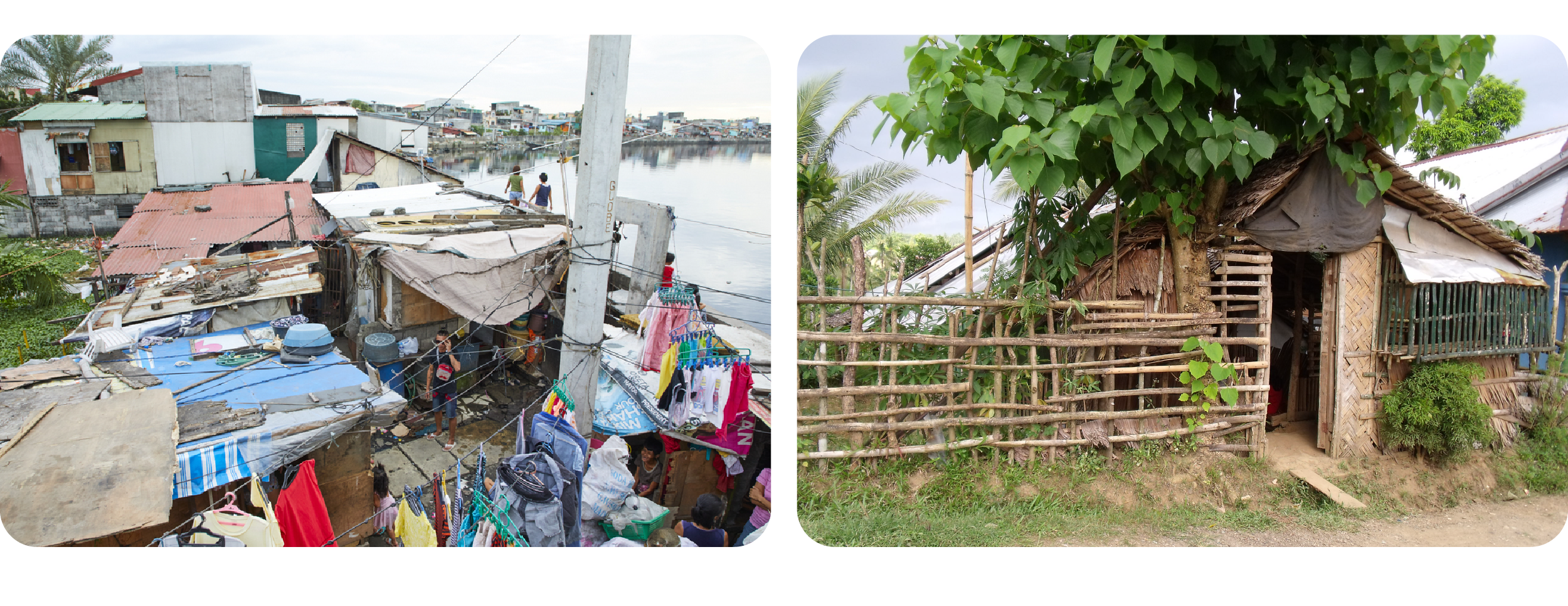 そのため、地域の人々の生活環境は厳しく、多くの人々がココナッツの葉、竹、ベニヤ板といった粗末な造りの家屋で生活しています。