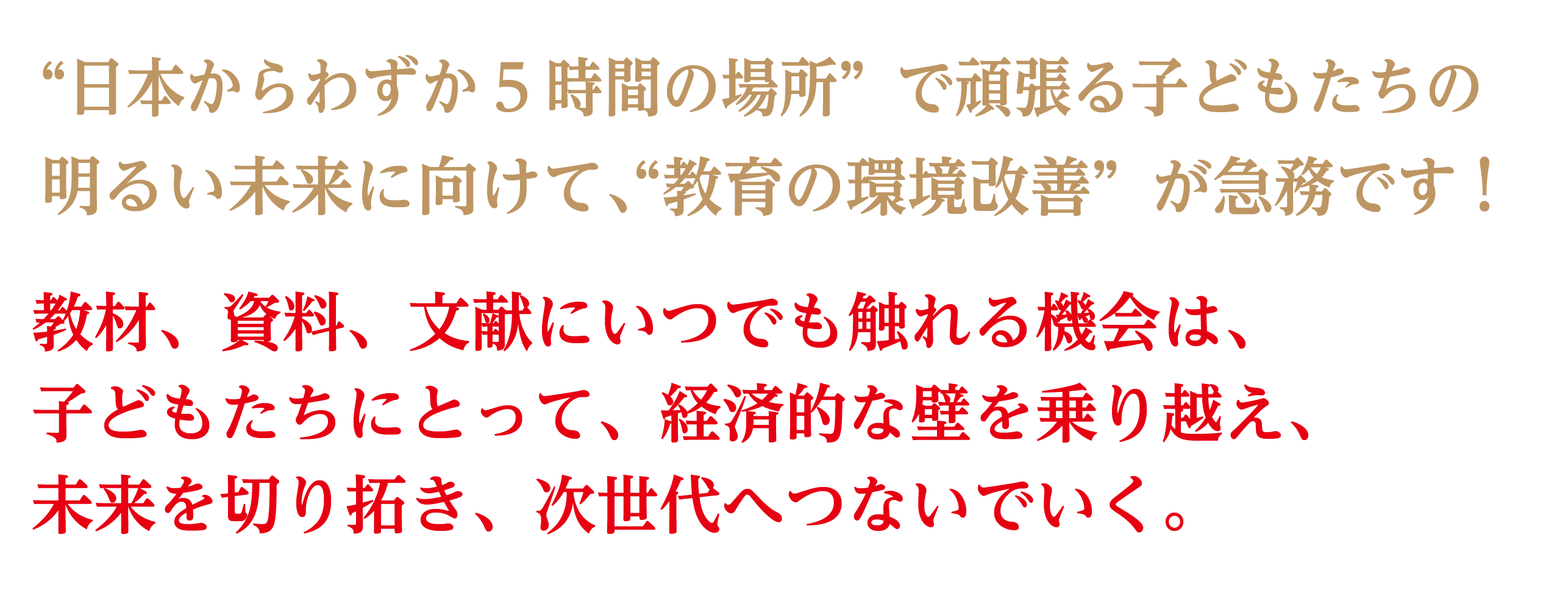 皆さまの図書室建設費用のご支援をお願いいたします。