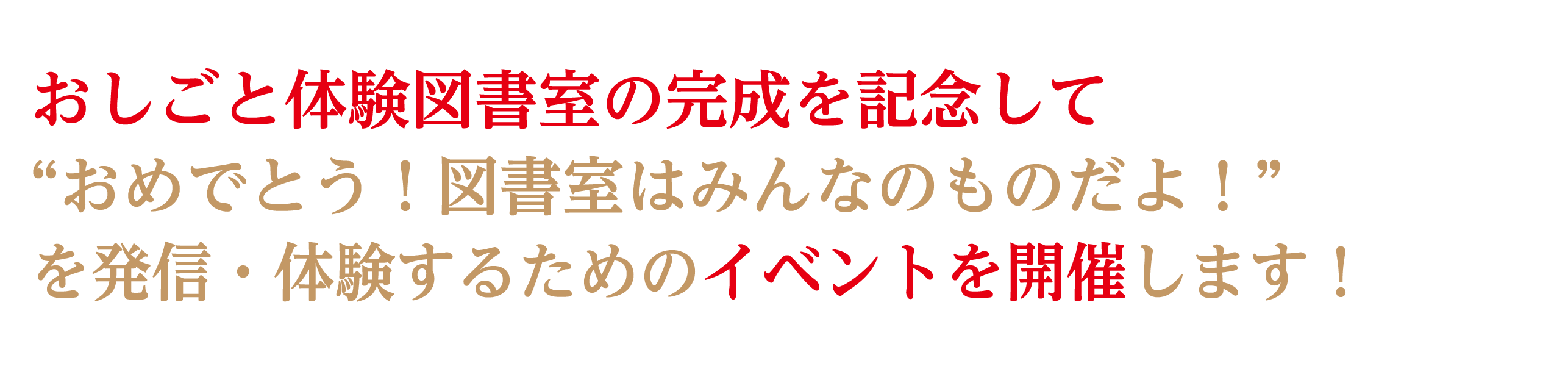 本はもちろんのこと、「おしごと体験」や「ものづくり」を中心とした、 “新しいこと”に出会える図書室。誰でも自由に使える子どもたちの図書室です。発見し、考え、学び、発信できる場所になります。そして、ここでの経験一つ一つが夢や将来の職業にも繋がる機会になると考えています。