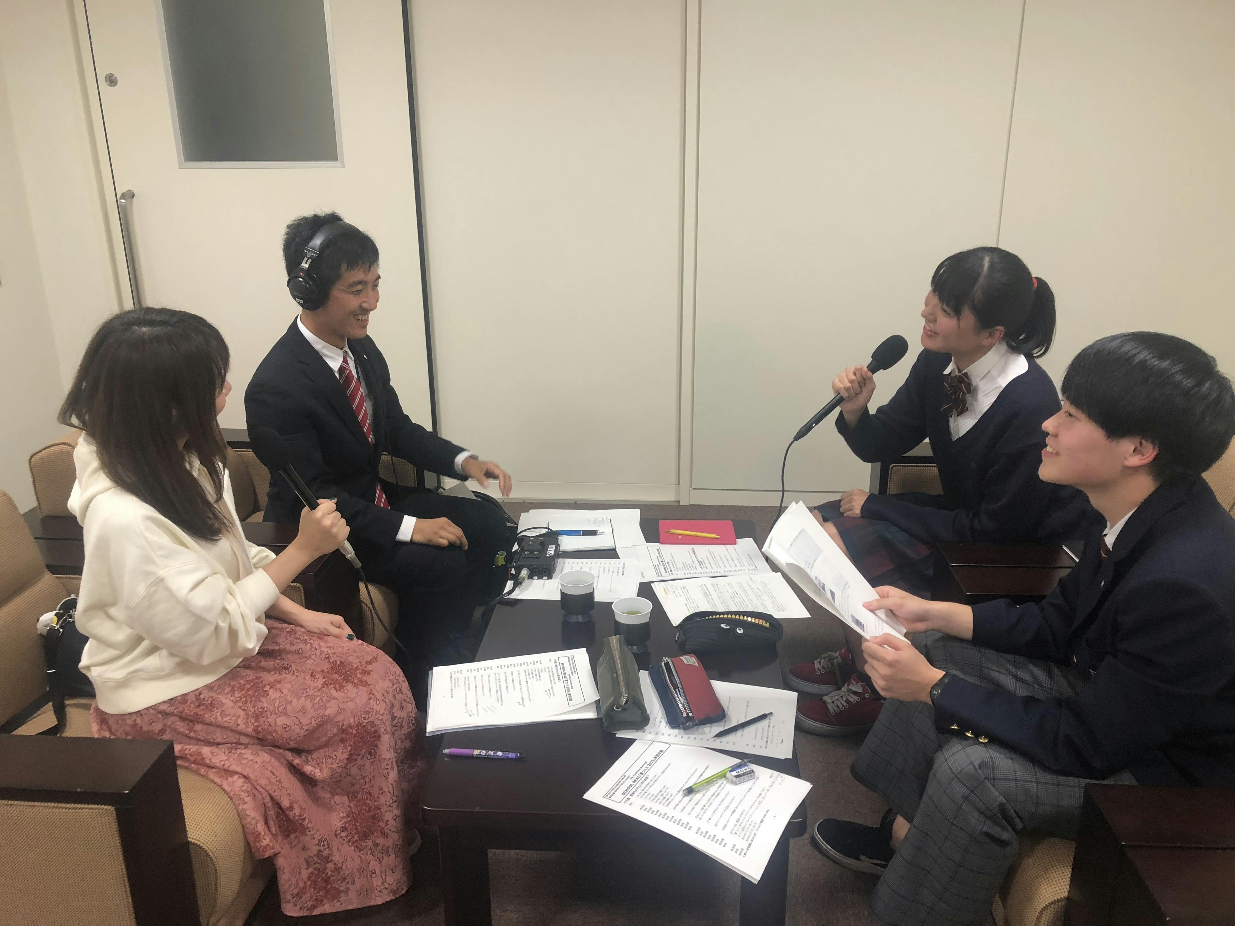 2018/11/15 13:1311月12日にFM FUJ I さんで放送されているYES! MORNINGという番組の「school real」というコーナーで「書フェス2019」について取り上げて頂けるということで、収録を学校の応接室にてさせて頂きました。収録は、スタッフさんとアナウンサーの東條さんの2名に学校まで来ていただいて行ったのですが、とっても緊張して、マイクが手汗でめっちゃ濡れちゃいました(笑)11 月 20 日(火) 代表 もか11月27日(火) 副代表 こーだい12月4日(火)広報 りゅーせーというスケジュールで三週間に渡って放送予定です。6時35分からと朝早いですが、3人で頑張って「書フェス2019」についてPRしたのでお時間ある方はぜひ! もっと見る