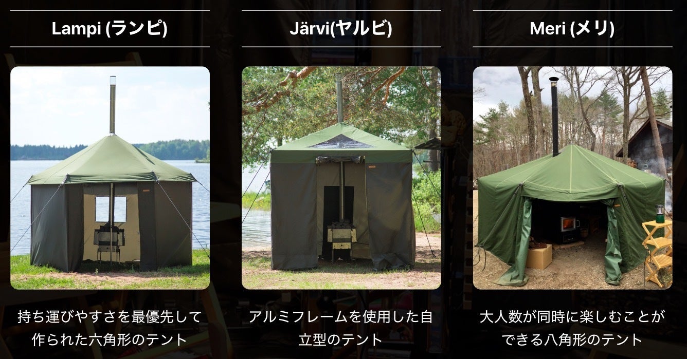 上記に加え、2名用の小型テントサウナHikimajaも出展します