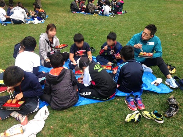 中島公園でアスリートと一緒に楽しくおしゃべりしながら、ゆったりとお昼ゴハンを食べてもらいます。