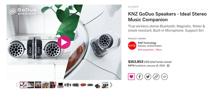 戻ってきました! ここ数年は、KNZ®Technologyにとって非常にエキサイティングな時間でした。 2017年には、GoDuoワイヤレススピーカーのために、KickstarterとIndiegogoにて、163,853ドルの支援金と1,600人以上の支援者により、資金を獲得しました。