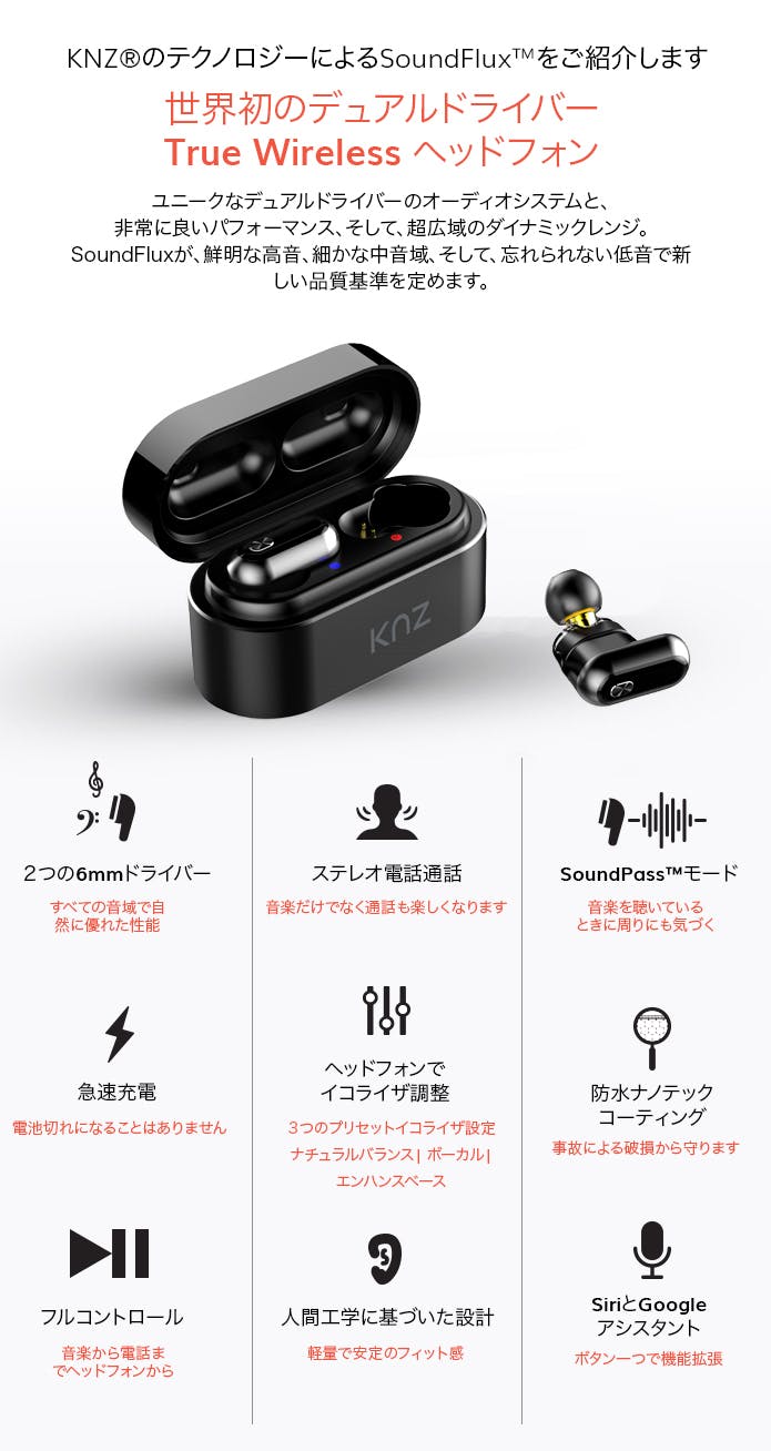 当社のデュアルドライバーTrue Wireless ステレオヘッドフォンは、市販されているほとんどのシングルドライバーヘッドフォンよりもはるかに広いダイナミックレンジを提供します。 2つのプロフェッショナル品質の6mmダイナミックドライバは、広範囲をカバーするノイズキャンセレーション技術で、クリアで純粋なサウンドエクスペリエンスを提供します。