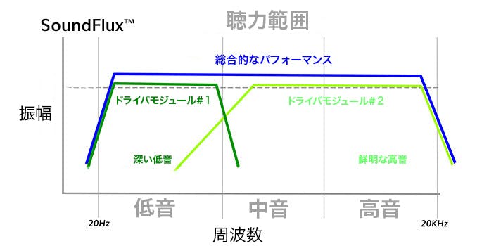 デュアルドライバーオーディオシステムを搭載したSoundFlux™は、2つのプロフェッショナルグレードのドライバーで低音域と高音域の両方を自然にカバーします。