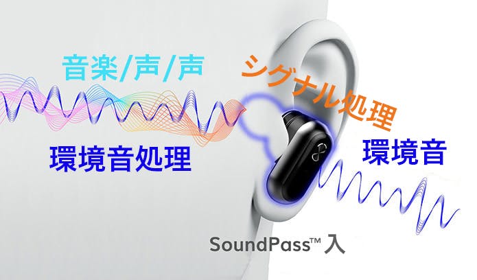 動作中のSoundPass™モード. 音楽を聞きながら会話をしても、周囲を認識できます