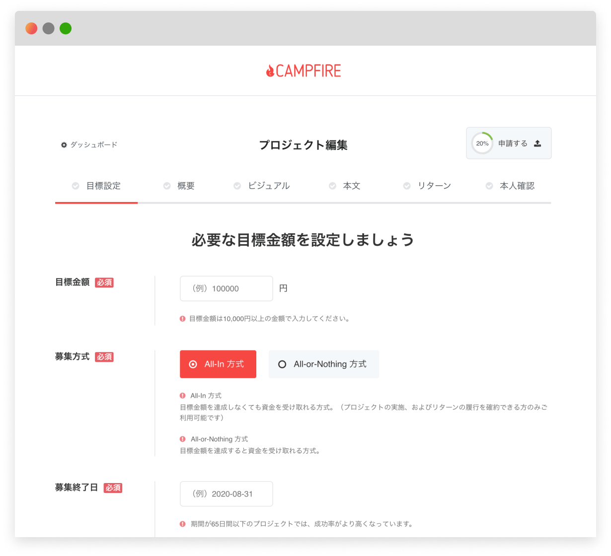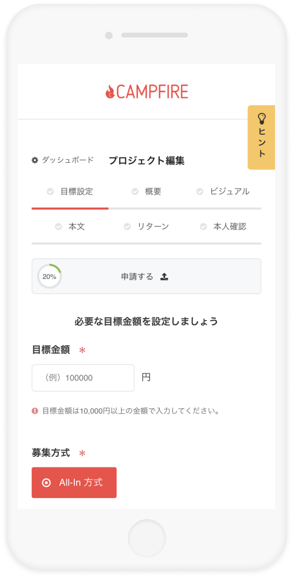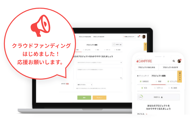 事前に必ず「利用規約」および「CAMPFIREにおけるプロジェクトの審査基準」をご一読ください。