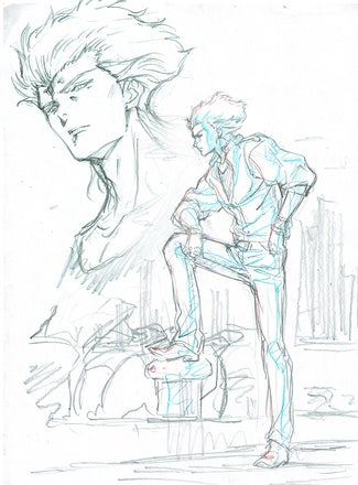 こちらがブラッドのラフイメージ案ですが、三浦亨氏より現状の物では「彼なりの正義に基づいてあえて悪の行動でも行うという男なので、もう少しインテリジェンスが欲しい。少し悪に振りすぎているので」とリテイクが入っていますので、修正後のVERも後日、皆様にお見せできるかもしれません。