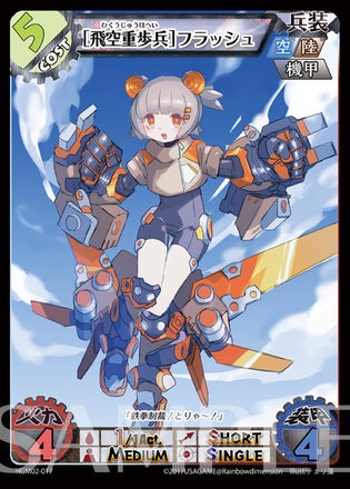 (※2 燃費=1度の攻撃や防衛に使用する燃料の数。HAGMI!では場に出た時にコストと同じ枚数の燃料を持っているので「フラッシュ」は燃料5:燃費1で5回行動可・「ロッソ」は燃料4:燃費2で2回行動可)