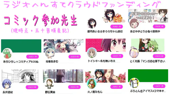 現時点で10名のまんが家先生にご参加頂ます予定となっております。