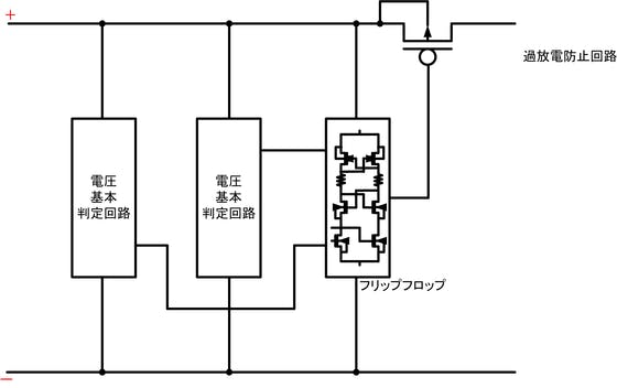 2つの電圧基本判定回路からの出力は、フリップフロップとして動作する回路に入力します。