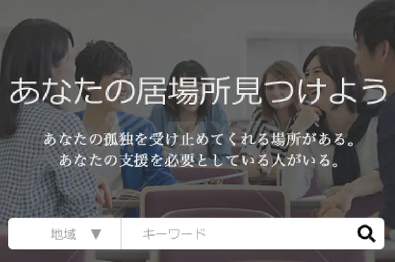「地域」と「キーワード」を入力し検索することで、お住いの地域の近くにある「居場所」を検索することができます。