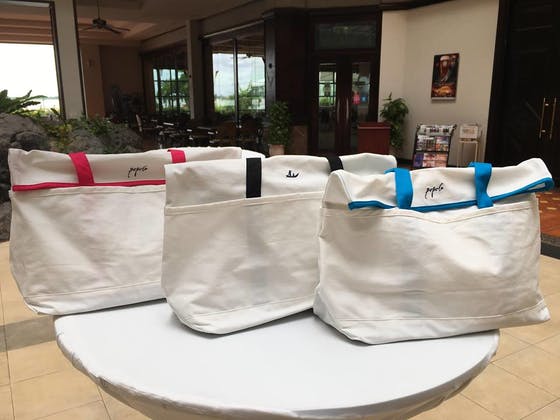 こちらのコラボバックにも縫い付けていただいています。